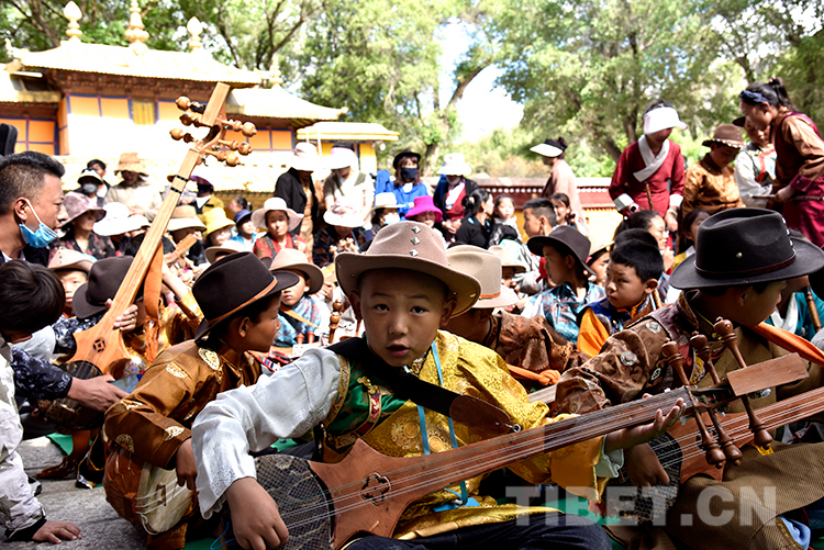 中國(guó)西藏網(wǎng)訊 6月16日,西藏自治區(qū)堆龍德慶區(qū)青少年活動(dòng)中心春季課程展演活動(dòng)在嗩吶演藝的《好漢歌》中拉開序幕。此時(shí),羅布林卡藏戲演出臺(tái)前已聚攏了許多家長(zhǎng)和市民。