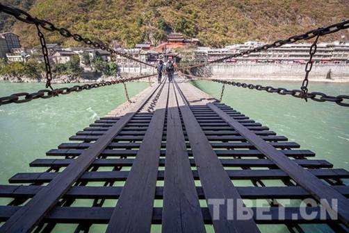 司機指著下游不遠處說:“你看,那才是瀘定橋。”母親順著司機指的方向,極目眺望,但見不遠處瀘定橋若隱若現(xiàn)在薄霧中,宛如害羞的少女臉龐裹著薄如蟬翼的面紗,在微風(fēng)吹拂下似露,欲遮,嬌柔可愛!“?。∵@就是舉世聞名的紅軍十八勇士在槍林彈雨中奮不顧身從敵人手里奪下的瀘定橋?!蹦赣H情不自禁地喊了出來。后面的汽車在催促著他們前行,司機非常惋惜地說:“要不是有緊急軍務(wù),我一定帶上嫂子過去,上橋親身體驗一下。”一年半后,出于對瀘定橋的敬仰和好奇,母親返回內(nèi)地時特地上了趟瀘定橋,真真切切感受了一番瀘定橋的壯觀、驚險、蹣跚行走在上面那種驚心動魄;橋下20米左右的河水逐浪翻滾,波浪滔天,好似排山倒海,聲震蒼穹,給人一種大氣磅礴、氣吞山河之感。正如當(dāng)年毛主席帶領(lǐng)紅軍長征過大渡橋時所感,欣然寫下了豪邁的千古絕唱《七律?長征》:“金沙水泊云崖暖,大渡橋橫鐵索寒……”