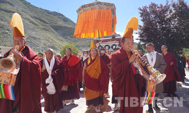 圖為8月4日,堆龍德慶區(qū)桑普寺僧眾列隊迎接十一世班禪的到來 攝影:王淑