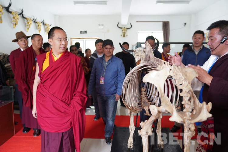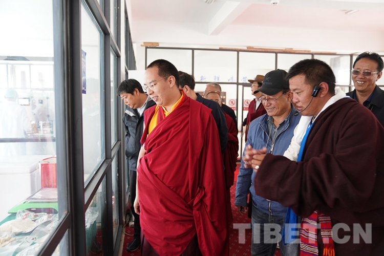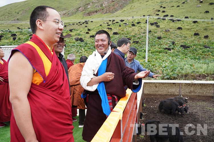 在調(diào)研中,十一世班禪關心的問題得到了很好的解答,他頻頻點頭表示贊許。從娘亞牦牛原種場了解到養(yǎng)殖基地的建成運營情況后,十一世班禪立刻趕往公司加工車間和銷售店,觀摩酥油、奶制品制作過程,了解銷售、帶動牧民增收情況。十一世班禪希望公司能夠?qū)⒓卫璧淖匀粴夂颉⑼恋貤l件等實際情況與科學實驗相結(jié)合,樹立好家鄉(xiāng)民族特色品牌,為草原生態(tài)保護和畜牧業(yè)發(fā)展探索經(jīng)驗。