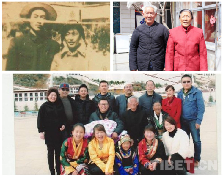 △圖為一個典型的“團(tuán)結(jié)族”幸福家庭。1959年,薄金清隨部隊(duì)來到西藏,轉(zhuǎn)業(yè)后到西藏自治區(qū)氣象局工作,1960年與藏族同事、大學(xué)生中巴桑結(jié)婚。而今,全家四世同堂生活在拉薩,20多口人中有藏、漢、回三個民族。左上為薄金清和中巴桑年輕時(shí)的合影,右上為薄金清和中巴桑2017年時(shí)的合影,下圖為薄金清和中巴桑一家全家福(圖片來源于央視、西藏發(fā)布、拉薩文明網(wǎng))