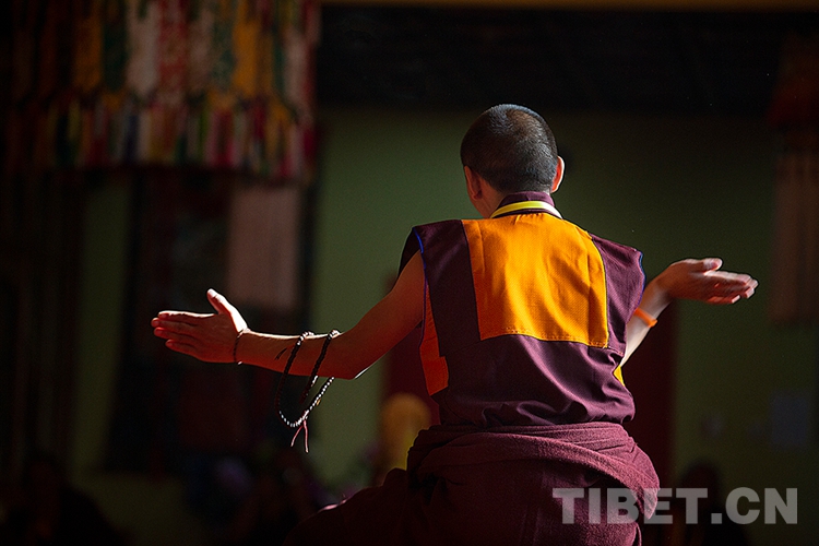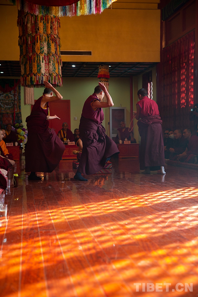 圖為藏傳佛教寧瑪派辯經(jīng)考試現(xiàn)場。