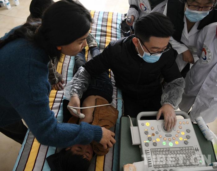 醫(yī)療隊(duì)和志愿者們不顧舟車勞頓和高原反應(yīng)的不適,認(rèn)真地對(duì)每一位前來(lái)篩查的小朋友進(jìn)行詳細(xì)的詢問(wèn)和認(rèn)真的檢查。對(duì)于有疑似癥狀的患者則現(xiàn)場(chǎng)利用從北京帶來(lái)的先進(jìn)設(shè)備進(jìn)行彩超診斷,并耐心和每一位患者家屬進(jìn)行交流和講解,在每個(gè)工作細(xì)節(jié)上精益求精。