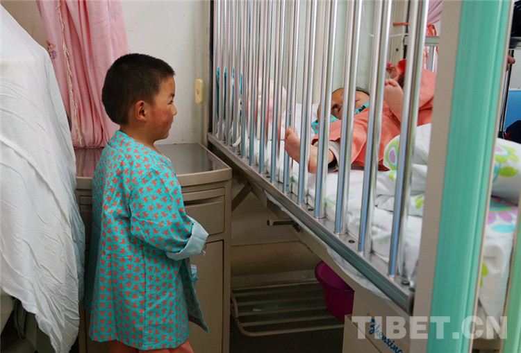 來自甘孜藏族自治州德格縣的呷瑪龍刀尼瑪是病房的“開心果”,跟誰都不認生,非常配合治療,吃藥從來不用費力勸說。護士長王寧說:“他的漢語說得非常流利,經?!盗铩霾》空椅覀兞奶欤€是我們和病人家屬之間的‘小翻譯’。”