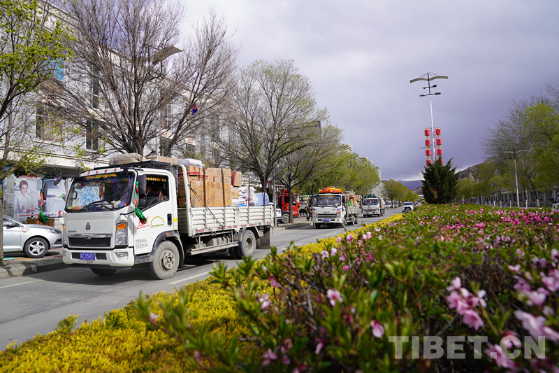 圖為農(nóng)民運(yùn)輸連隊在山南市區(qū)運(yùn)貨中