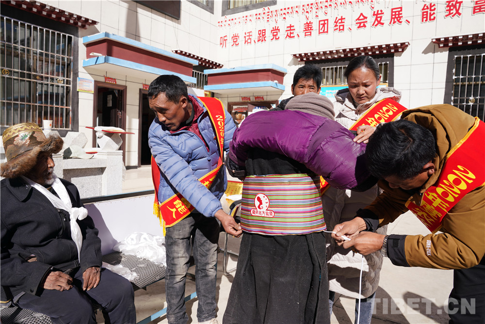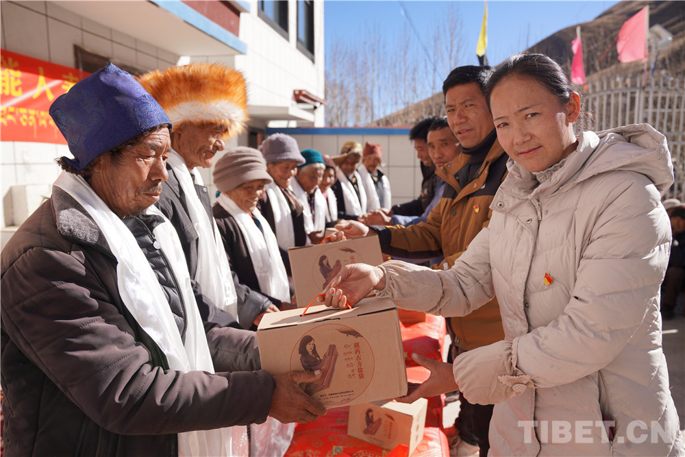 先富起來(lái)的人們集中慰問了村里10名老人,送去了10條被子、10套藏藥古方鹽袋等價(jià)值近3000元的慰問品,得到了村民們的贊譽(yù)。