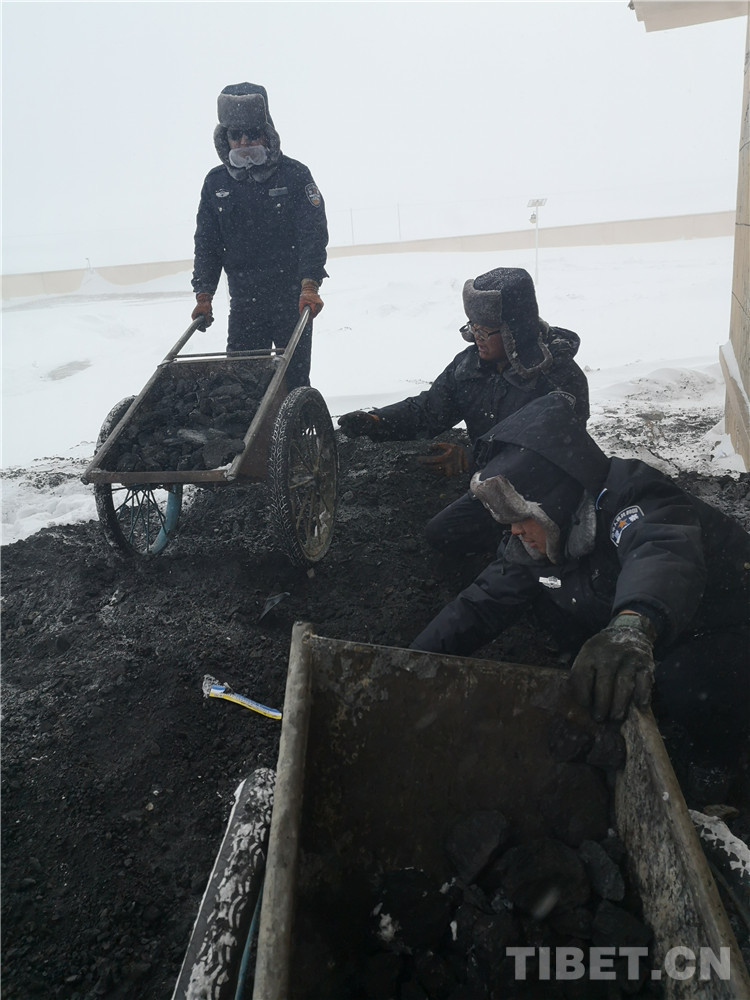 圖為邊境民警們?cè)?019年春節(jié)前遭遇暴雪時(shí)運(yùn)煤