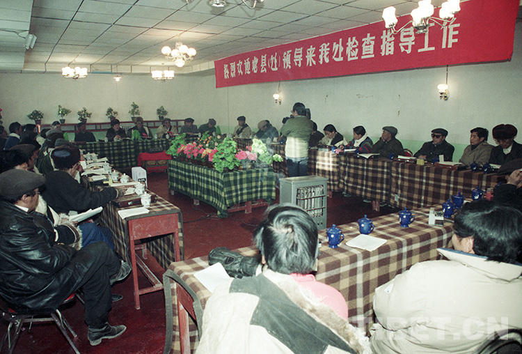 圖為西藏那曲地區(qū)基層政權(quán)建設(shè)工作現(xiàn)場(chǎng)會(huì)在文部辦事處召開(唐召明1989年12月攝)