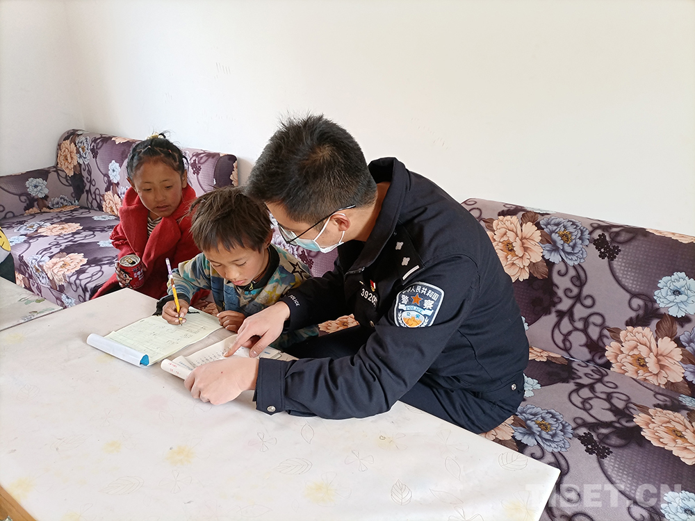 上察隅邊境派出所民警在一次走訪中了解到這個家庭的情況,將其納入了幫扶計劃,從此,上察隅邊境派出所轄區(qū)多了兩個“小警情”。每逢周末、節(jié)假日,民警們都會主動來家中為孩子補(bǔ)課。長期以來,兩個孩子親切地稱呼民警為“警察爸爸”。