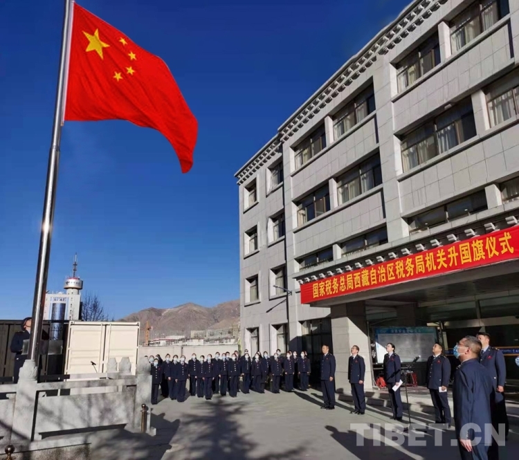圖為2月21日,國(guó)家稅務(wù)總局西藏自治區(qū)稅務(wù)局機(jī)關(guān)舉行升國(guó)旗儀式