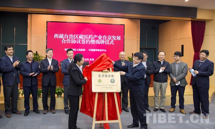圖為西藏自治區(qū)藏醫(yī)藥產(chǎn)業(yè)在京發(fā)展合作協(xié)議簽約暨揭牌儀式現(xiàn)場(chǎng) 攝影:許娜