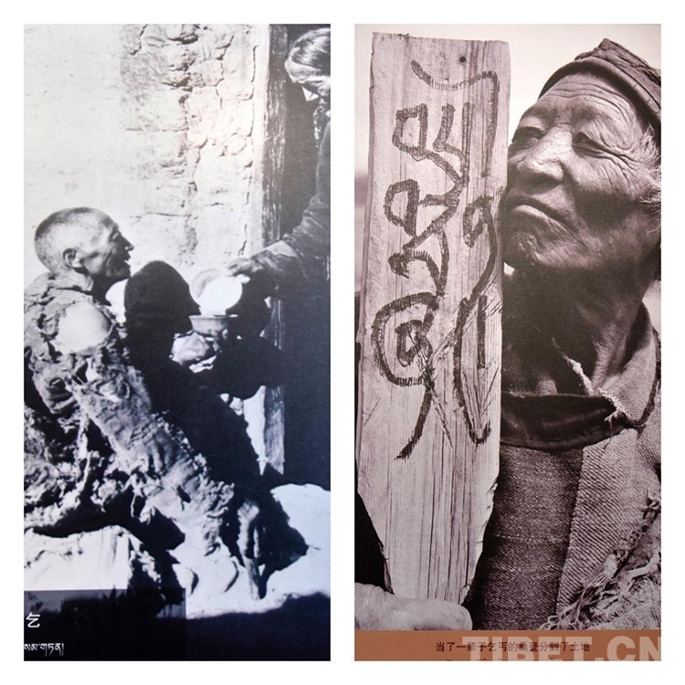 中國西藏網(wǎng)訊 一張圖片是衣服破爛的桑登手拿木碗正在求乞,一張圖片是桑登分到了土地,短短幾年,曾是乞丐的桑登生活發(fā)生了巨大的變化,這一切是因?yàn)?959年的西藏民主改革。