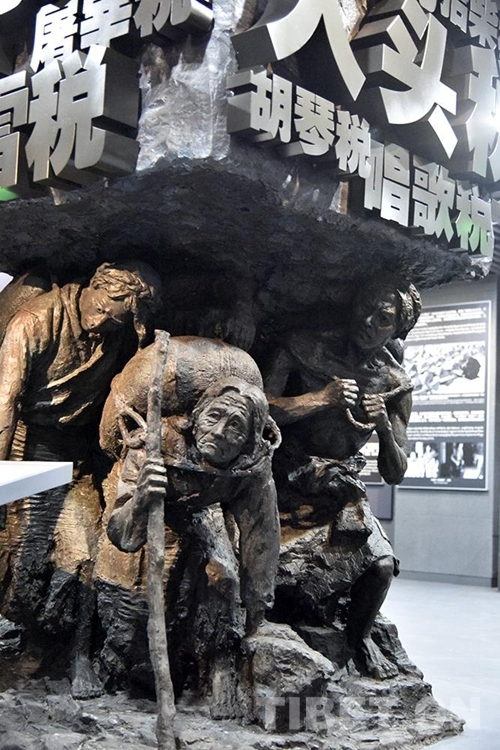 圖為西藏百萬農(nóng)奴解放紀(jì)念館內(nèi)反映舊西藏多如牛毛的苛捐雜稅的雕塑 攝影:王媛媛