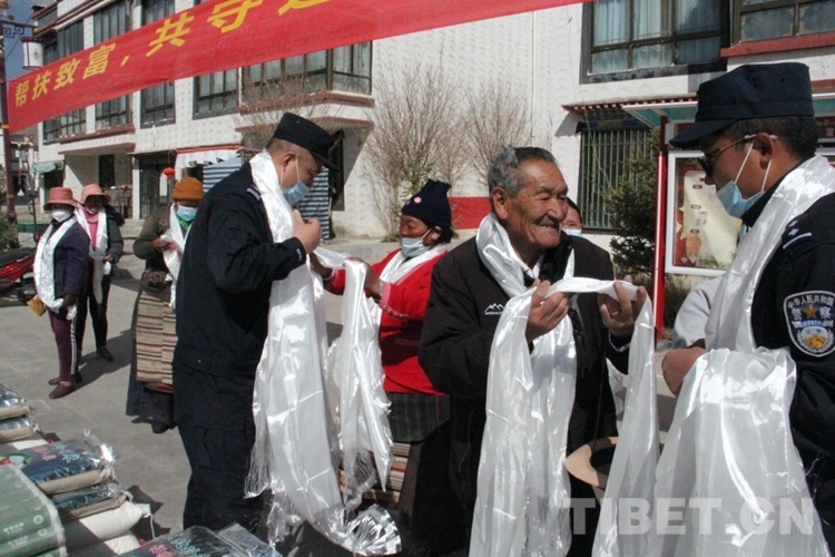 中國西藏網(wǎng)訊 大米、面粉、面條、食用油……當西藏聶拉木出入境邊防檢查站民警將一袋袋物資搬進西藏自治區(qū)日喀則市樟木新區(qū)活動廣場時,大家面帶微笑,手捧哈達,連連稱謝。