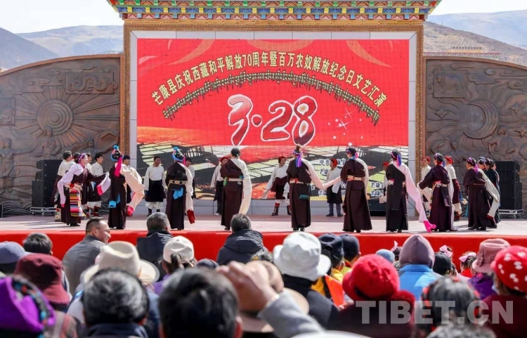 中國西藏網(wǎng)訊 在“3·28”西藏百萬農(nóng)奴解放紀(jì)念日即將到來之際,西藏自治區(qū)昌都市芒康縣在縣弦子廣場舉辦慶祝西藏和平解放70周年暨西藏百萬農(nóng)奴解放紀(jì)念日文藝匯演活動。