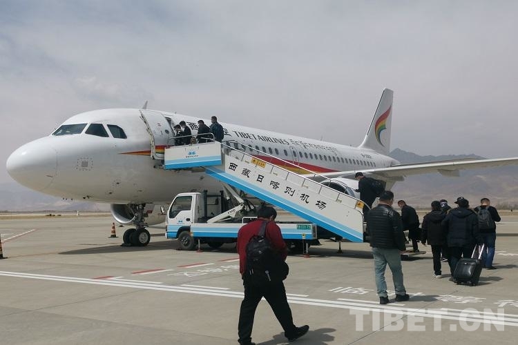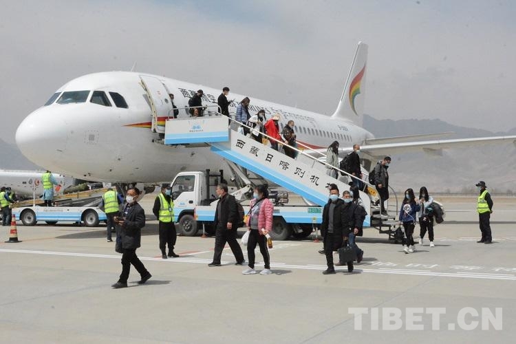 圖為乘機(jī)抵達(dá)日喀則的旅客
