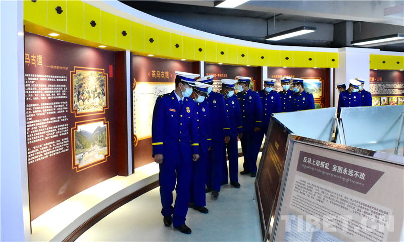 圖為左貢縣森林消防中隊駐芒康縣分隊全體指戰(zhàn)員重溫18軍進(jìn)藏的艱苦歷程 攝影:彭順雄