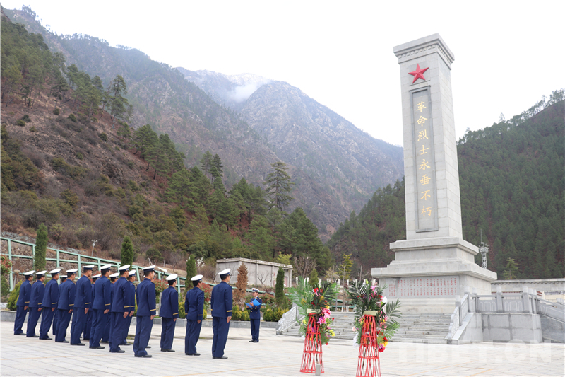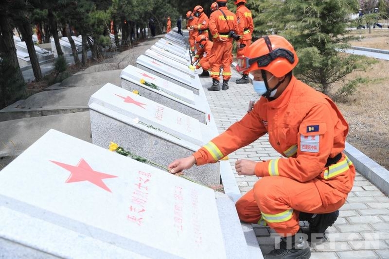 圖為林芝市森林消防支隊指戰(zhàn)員向烈士敬獻(xiàn)鮮花