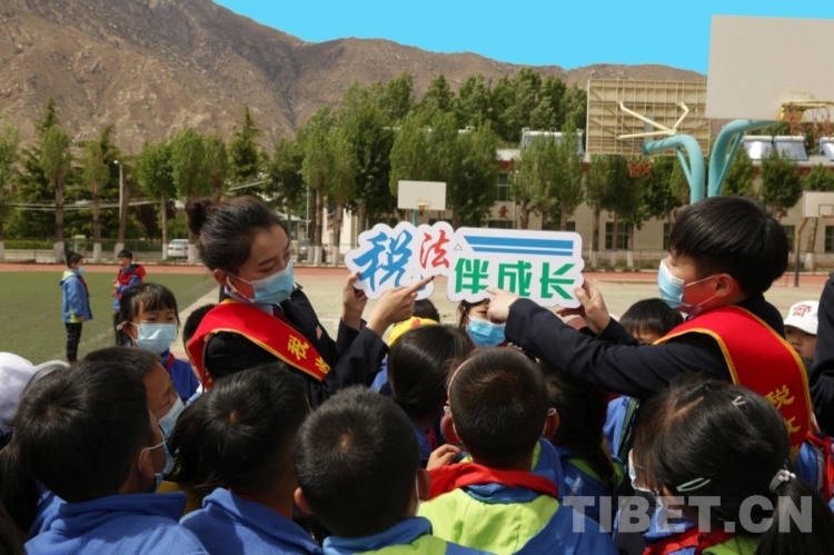 “稅官們用淺顯易懂的藏漢雙語向同學(xué)們講解稅收的起源等稅收知識,不僅豐富了孩子們的課外知識,還能幫助他們從小增強納稅意識。剛才還有學(xué)生跑來告訴我,將來也要像叔叔們一樣,為祖國收稅!”年級主任巴桑笑著告訴前來為孩子上課的稅務(wù)干部們。