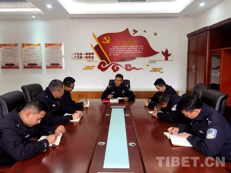 圖為拉薩出入境邊防檢查站執(zhí)勤一隊組織民警學習