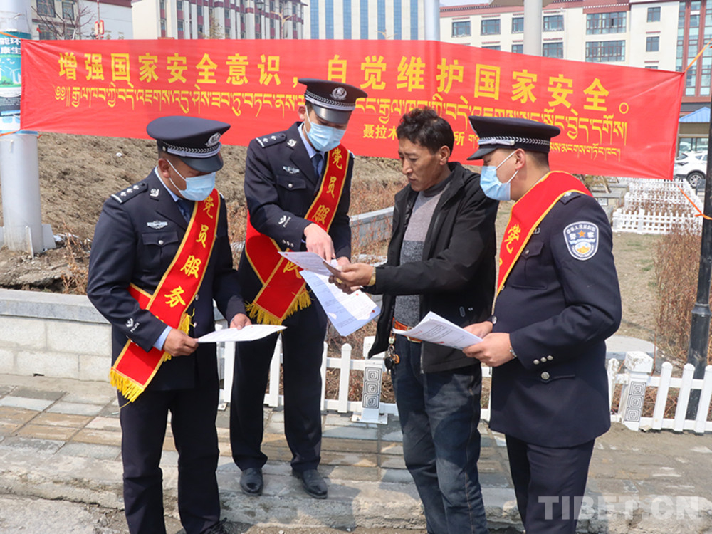 “12339,是國家安全機(jī)關(guān)受理公民和組織舉報(bào)電話。這條熱線是由國家安全部設(shè)立的,為了方便公民組織向國家安全機(jī)關(guān)舉報(bào)行為或線索?!痹谖鞑厝湛t市的街頭,日喀則邊境管理支隊(duì)民警達(dá)娃卓嘎為過往群眾講解“全民國家安全日”的相關(guān)知識。