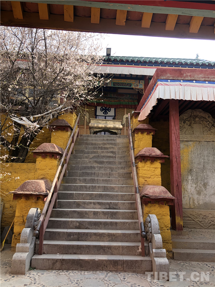 這段碑文充分表明了,清朝中央政權(quán)對西藏地方的守護和管理。也表現(xiàn)出建廟立碑者大將軍??蛋驳男亟蠛蜌馄?。在看碑文時,腦子里浮現(xiàn)出那場發(fā)生在18世紀的戰(zhàn)爭,清朝大將軍??蛋猜暑I(lǐng)滿漢蒙藏各民族組成的騎兵,刀劍相錯、血雨腥風的畫面。一抬頭,廟中院子里卻靜謐異常,只有那株開滿花的桃樹,散落幾片花瓣,似乎在隨我一同追憶和祭奠這段歷史中的高光時刻。這段歷史中充滿了各種有益于我們這個時代的精神內(nèi)核,不畏艱險保家衛(wèi)國、各民族兄弟同仇敵愾、對共同民族英雄的認可等,這些都凝聚在這個安靜的上午,這座名字很獨特的小廟之中。抬起頭,從關(guān)帝廟的正門,往外望去,整個拉薩城充滿活力和現(xiàn)代氣息地展現(xiàn)在眼前,這座寺廟的靜謐似乎正像廟中供奉的兩位英雄一樣,默默地守護著這座城市的煙火氣息。