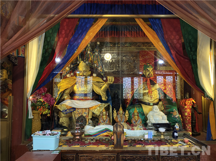 其實根據(jù)這座廟的緣起,應(yīng)該稱它為“關(guān)帝廟”,后來隨著時間流逝,當時在藏族民間沒有關(guān)帝的概念,就把里面供奉的關(guān)帝和格薩爾聯(lián)系了起來。因為兩位人物在形象和傳說故事中確實有很多共同之處。關(guān)羽號稱美髯公,拿著冷艷鋸,身著盔甲,一副高級武將的形象,而格薩爾傳統(tǒng)上也是美髯,身著盔甲,拿著長矛、盾牌、寶劍等武器。兩位在代表的人格和精神上都具有威武、嚴明、正義等意義,關(guān)羽是忠義千秋的武圣人,象征著忠義仁勇誠信的美德。而格薩爾王在藏族神話中,懲奸除惡、輔助弱小、英勇無畏,也象征了種種美德。所以藏族民間將兩位由人封神的“武圣”“武神”搞混,也在情理之中。這也從某種角度體現(xiàn)了從各個民族文化發(fā)源的民間文化,是在各民族交往交流交融中實現(xiàn)的,并在文化交融中形成中華民族共同體意識。其實拋卻民族特色,各民族的人民都是喜歡善良、討厭丑惡,喜歡忠義、厭惡奸邪,喜歡英勇、厭惡膽小,喜歡誠信、厭惡欺詐的,人性的趨善、趨美、趨真,是所有民族共同的特點和追求。