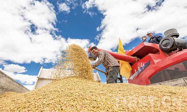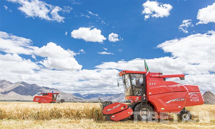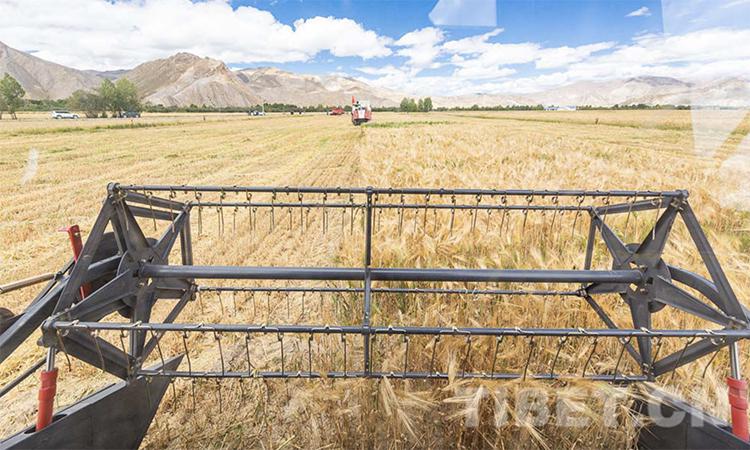 圖為日喀則市江孜縣青稞機(jī)械化收割現(xiàn)場(chǎng) 攝影:趙耀