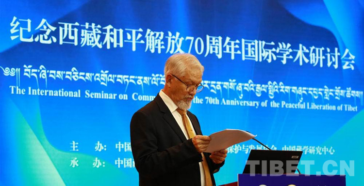 圖為謝文·根多在紀念西藏和平解放70周年國際學術研討會上發(fā)言 攝影:楊月云