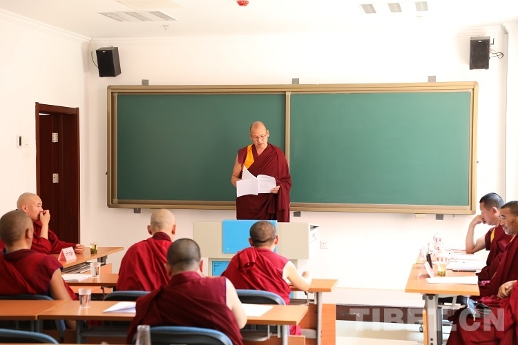 相對于前幾天口若懸河、手舞足蹈的辨經(jīng)考試場面而言,論文答辯考場則寧靜了許多。