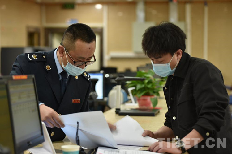 圖為西藏自治區(qū)稅務系統(tǒng)工作人員幫助納稅人辦理業(yè)務