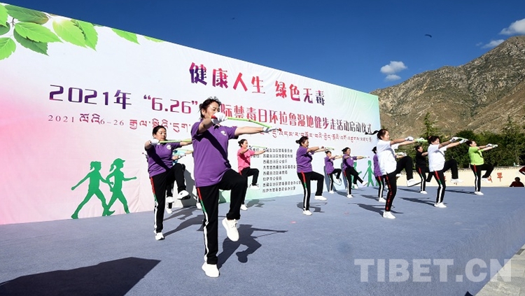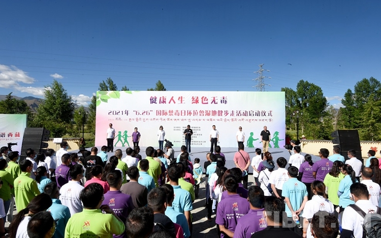 中國(guó)西藏網(wǎng)訊 6月26日,2021年“6·26”國(guó)際禁毒日環(huán)拉魯濕地健步走活動(dòng)啟動(dòng)儀式在拉薩市拉魯濕地文化廣場(chǎng)公園舉行。通過健身活動(dòng)倡導(dǎo)“健康人生、綠色無毒”理念,動(dòng)員廣大人民群眾參與禁毒斗爭(zhēng)。自治區(qū)、市兩級(jí)禁毒委成員單位代表、公安民警代表、演職人員等健步愛好者共計(jì)200余人參加了健步走活動(dòng)。