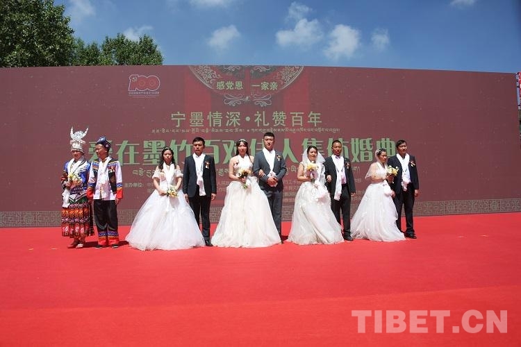 中國西藏網(wǎng)訊 藍(lán)天為媒、碧水為證,與黨同慶、永結(jié)同心。在中國共產(chǎn)黨成立100周年來臨之際,6月28日,“寧墨情深·禮贊百年”——愛在墨竹百對(duì)佳人集體婚典在西藏自治區(qū)拉薩市墨竹工卡縣甲瑪鄉(xiāng)松贊干布紀(jì)念館盛大舉行,百對(duì)佳人隆重集會(huì),迎建黨百年、結(jié)百年姻緣。
