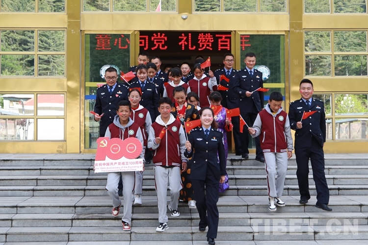圖為西藏亞東出入境邊防檢查站與駐地學(xué)生開展“童心向黨 禮贊百年”系列活動(dòng)