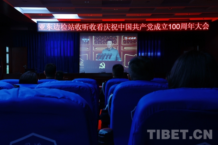 圖為西藏亞東出入境邊防檢查站組織民警觀看慶祝中國共產(chǎn)黨成立100周年大會(huì)
