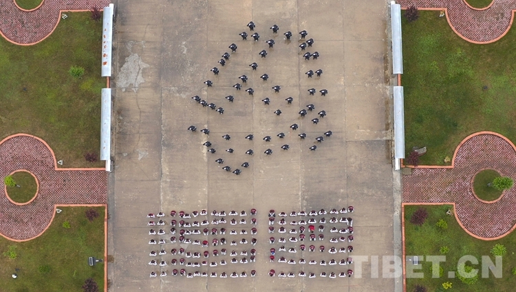 圖為西藏亞東出入境邊防檢查站組織全站民警和140余名中學(xué)生組成“黨徽下的倒計(jì)時(shí)”方陣,慶祝建黨100周年
