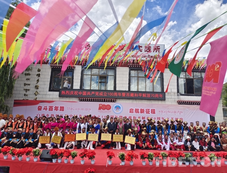 為慶祝中國共產(chǎn)黨成立100周年暨西藏和平解放70周年, 7月1日,白堆鄉(xiāng)還舉辦了第三屆民間文藝匯演??h民間藝術(shù)團(tuán)、各村文藝演出隊(duì)和鄉(xiāng)機(jī)關(guān)干部用舞蹈與歌聲展現(xiàn)出人們的美好生活以及對黨的感恩對祖國的熱愛。通過精彩的文藝節(jié)目,弘揚(yáng)奮斗精神,謳歌黨的光輝歷程。
