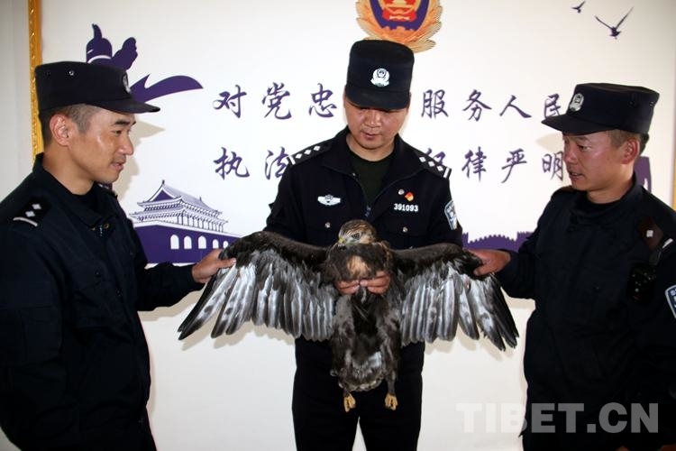 中國西藏網(wǎng)訊 近日,西藏自治區(qū)阿里邊境管理支隊馬攸橋邊境檢查站(以下簡稱:馬攸橋邊檢站)民警成功救助一只國家一級保護(hù)動物金雕。