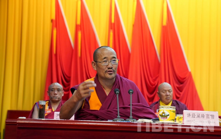 區(qū)黨委常委、統(tǒng)戰(zhàn)部部長,區(qū)政協(xié)黨組副書記、副主席旦科代表西藏自治區(qū)黨委、政府在會上講話時說,2016年以來,中國佛教協(xié)會西藏分會按照中央的部署和區(qū)黨委的要求,每年都舉辦藏傳佛教講經(jīng)闡釋交流會,對藏傳佛教經(jīng)典和教義教規(guī)作出符合時代進步、社會發(fā)展、信眾需要的理論闡釋,并面向信眾進行宣講,取得了重要成果,產(chǎn)生了廣泛的影響,積累了寶貴經(jīng)驗,藏傳佛教中國化邁出了實質(zhì)性步伐。全區(qū)藏傳佛教界代表人士自覺以習(xí)近平新時代中國特色社會主義思想和社會主義核心價值觀為引領(lǐng),弘揚中華優(yōu)秀傳統(tǒng)文化,對藏傳佛教教義教規(guī)作出時代化、大眾化的新闡釋,展示了深厚的宗教造詣、愛黨愛國愛人民領(lǐng)袖的真摯情懷和走中國特色社會主義道路的堅定決心。