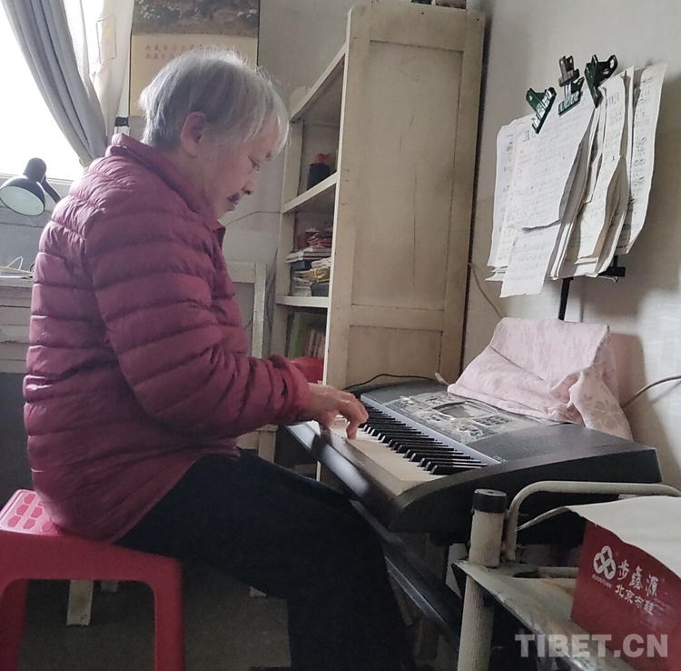 鄧親和,四川省樂山市犍為縣人,出生于1931年,十八軍52師文工隊?wèi)?zhàn)士。1950年,鄧親和19歲,正值高三,成績優(yōu)異的她不顧家人的勸阻,毅然放棄了繼續(xù)讀書的機會,踏上了解放西藏的征途,從此在雪域高原上留下了人生最寶貴的青春足跡。初見鄧?yán)蠋?,她親切和藹的樣子,給我留下深刻的印象。老人雖然退休多年,但是她的生活仍然格外豐富。據(jù)老人講,她的作息時間比較規(guī)律,堅持做八段錦鍛煉身體,自己做家務(wù),空閑時間還會看書看報、提筆練字,或是彈彈電子琴,唱唱歌等等,生活豐富多彩。此刻,我從她的身上看到了年輕時鄧親和的神態(tài)與風(fēng)采?;厥啄嵌螎槑V歲月,翻雪山、過草地、穿峽谷、涉冰河……面臨高山缺氧的生命危險,趟越急流冰河的刺骨鉆心,爬冰臥雪、忍饑耐寒,遇艱險不畏其險,歷困難不以為難,樁樁件件好似一首首雋永的絢麗詩篇,常在她記憶里回蕩,令人難忘。
