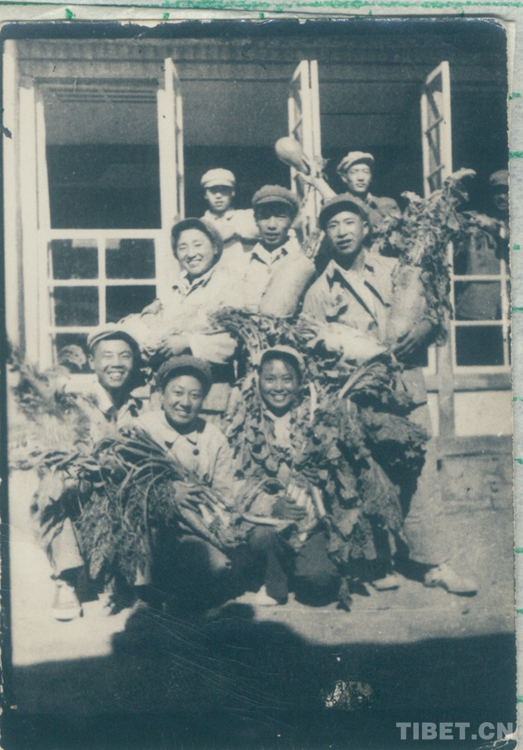 入城后,文工隊分別住在江孜城郊強查洞幾處民房里。初到江孜,后方給養(yǎng)一時運不上來,蔬菜等主副食又得不到有效供給,西藏只有土豆、元根,他們還不能隨便采購。西藏工委和十八軍黨委遵照毛主席“進(jìn)軍西藏,不吃地方”的指示,提出“搞好生產(chǎn)是進(jìn)藏部隊長期的一項中心任務(wù)”,文工隊同分工委全體工作人員一道在帕拉開墾荒地、播種糧食。天寒地凍又缺少農(nóng)具,用鐵锨鏟鏟不動,用十字鎬挖,一鎬下去,直冒火星。同志們想方設(shè)法烤凍土,翻起一塊一塊像鐵板一樣的凍土,晾在太陽下曬,然后再一鎬一鎬的砸碎、耙平,沒有耕牛,男同志就扛起繩拉犁,女同志平地耙地。江孜海拔4000米以上,平日里都缺氧,此時再加上勞累更是頭暈?zāi)X脹,上氣不接下氣,可是他們充分發(fā)揚“不怕苦不怕累”的精神,終于開出一片荒地、撒下種子、收獲了自己種下的糧食,做到了一部分自給,在西藏群眾中產(chǎn)生了很好的影響。文工隊還在住地附近開辟了一塊地種菜,用實際行動徹底粉碎了西藏上層反動集團妄圖用糧食困住解放軍進(jìn)而餓走解放軍的美夢。