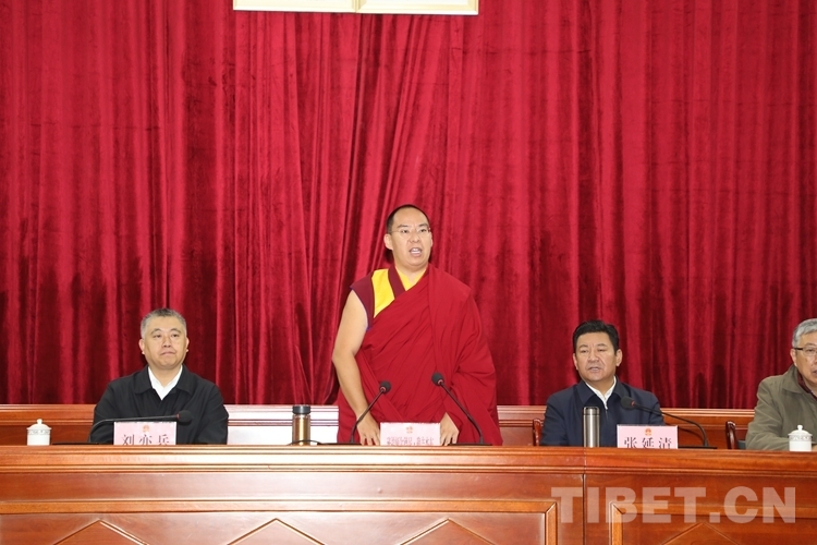 全國政協(xié)常委、中國佛教協(xié)會副會長、中國佛教協(xié)會西藏分會會長、援助西藏發(fā)展基金會理事長班禪額爾德尼?確吉杰布參加活動啟動儀式并作講話。