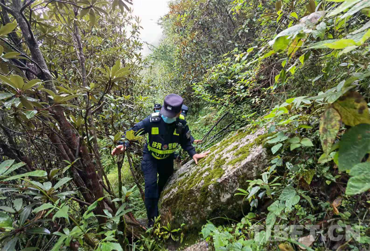 在民警們?nèi)粘5难策夁^程中,經(jīng)常能遇到一些蛇,吐著血紅的毒芯。一邊走,一邊用木條敲打著前面的草叢,這是民警們自創(chuàng)的驅(qū)蛇方式——“打草驚蛇”?!拔覀兩缴系纳呖啥嗔?,五顏六色的,好幾次我拍下來用網(wǎng)絡(luò)識(shí)圖識(shí)別,都無法找到答案……”民警朱瀅說到。