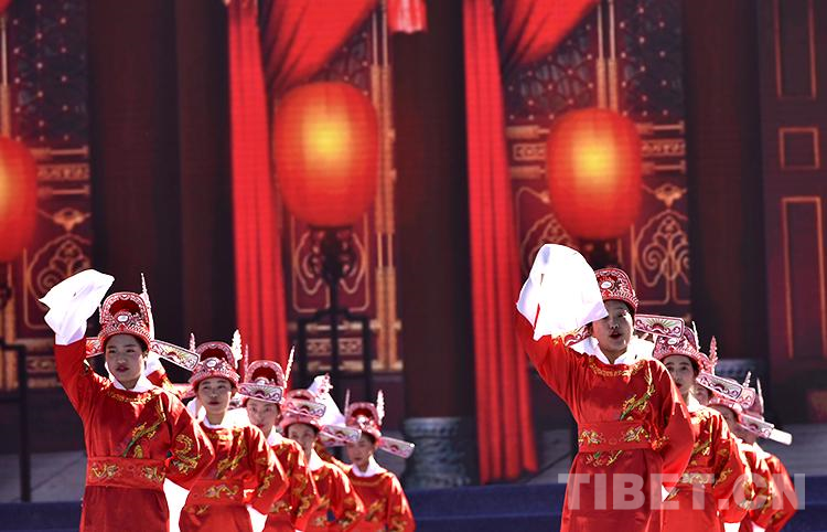 圖為2021雅礱文化旅游節(jié)開幕式文藝演出現(xiàn)場,山南市第二高級(jí)中學(xué)學(xué)生表演黃梅戲《女駙馬》選段 攝影:王媛媛