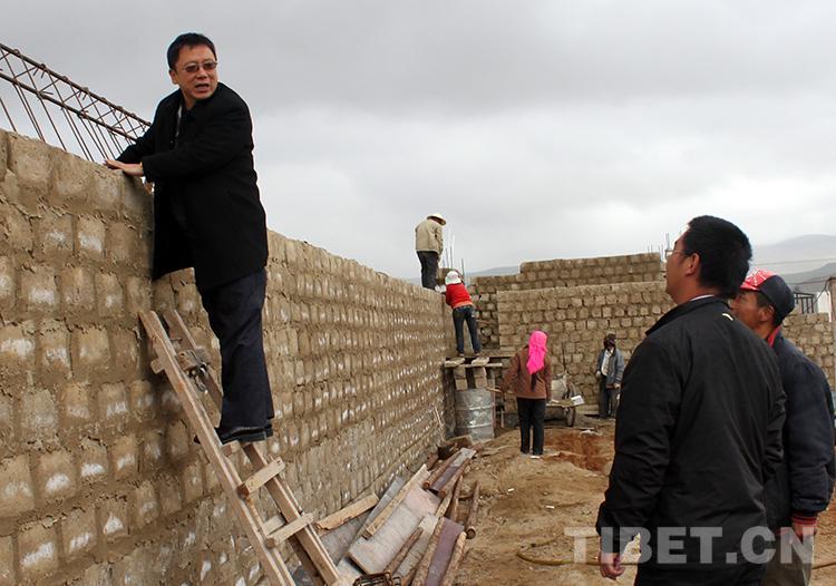 圖為中國石化第五批援藏干部、班戈縣常務副縣長潘峰(左)和副書記陳志清(右)在班戈縣鄉(xiāng)下檢查牧民定居房的施工情況(唐召明2011年6月25日攝)