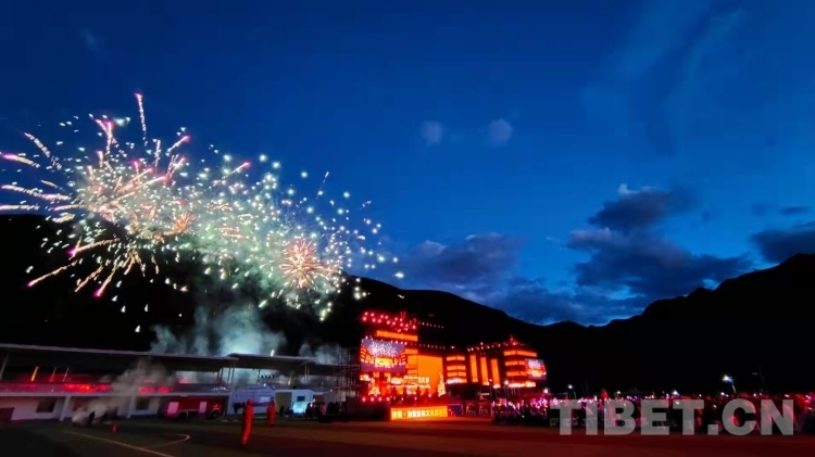圖為第十屆加查達(dá)布文化旅游節(jié)開幕式上絢麗的煙火