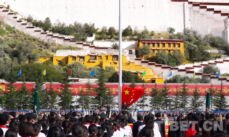 中國西藏網(wǎng)訊 10月1日的清晨,天空彩霞漫天、街道紅旗招展,西藏自治區(qū)慶祝中華人民共和國成立72周年“升國旗、唱國歌”儀式在拉薩市布達拉宮廣場舉行。