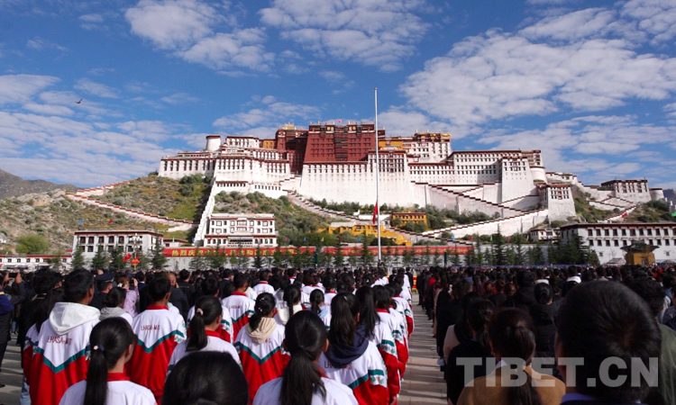 當日,布達拉宮廣場上,漢、藏文“熱烈慶祝中華人民共和國成立72周年”的標語格外醒目,西藏自治區(qū)以及拉薩市各族各界代表共1000余人參加了儀式。(中國西藏網(wǎng) 記者/趙耀)