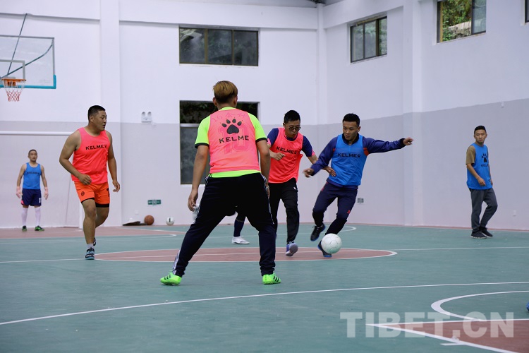 圖為五人制室內(nèi)足球娛樂賽現(xiàn)場 攝影:尼瑪?shù)ぴ?/span>