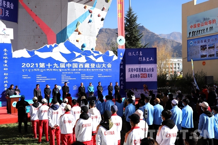 中國西藏網(wǎng)訊 10月27日,在北京冬奧會倒計時100天和中國西藏登山大會成功舉辦20周年之際,2021第十九屆中國西藏登山大會開幕式在拉薩喜馬拉雅登山向?qū)W校舉行。